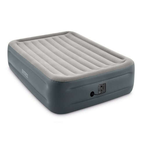 Intex comfort plush elevated dura beam airbed with internal electric pump bed height 22 queen gray.